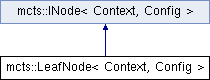 Public Types inherited from mcts::INode< Context, Config > | |